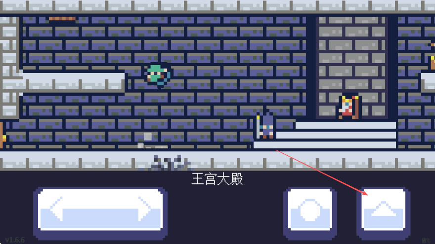 4、点击屏幕下方右边的跳跃按钮,操控朗克跳跃,开始踏上拯救公主、讨伐黑暗魔王的冒险之旅。