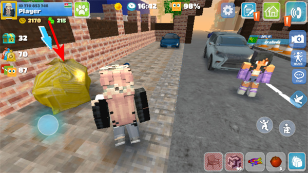 4、在室外场景中点击资源包如黄色袋子,可获取金币、道具等资源,这些资源可用于建筑升级、道具购买等操作。