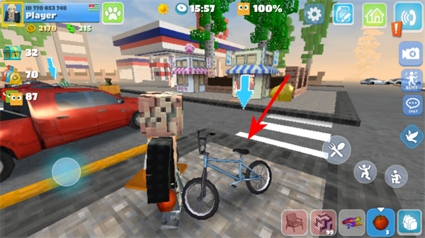 1、在场景中点击可交互物品如自行车,触发道具获取或功能解锁,这类交互是积累资源、解锁玩法的基础方式。