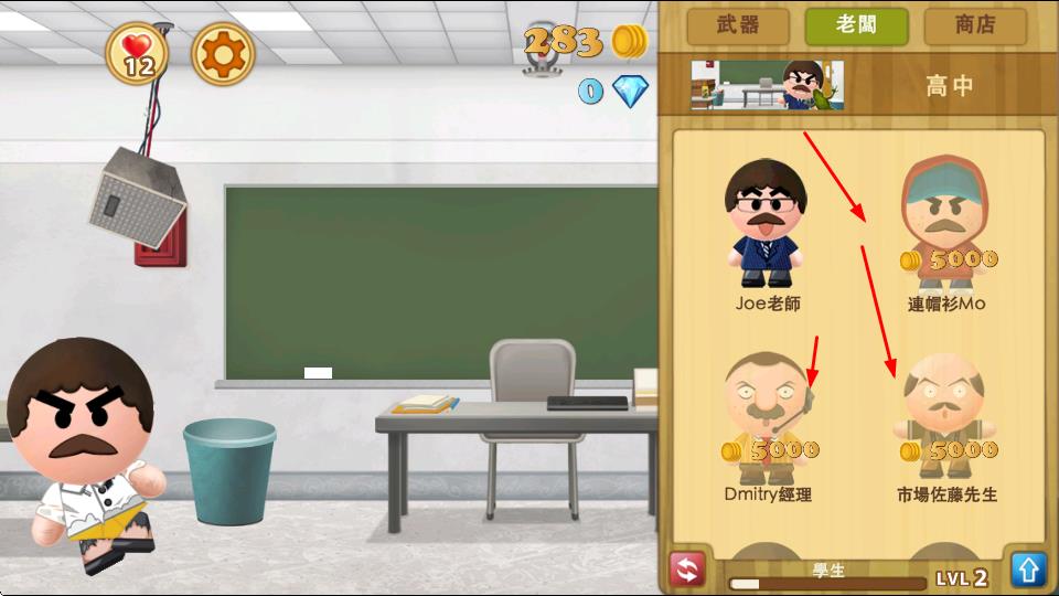 4、进入老闆界面,消耗金币解锁、連帽衫Mo、市場佐藤先生等角色。