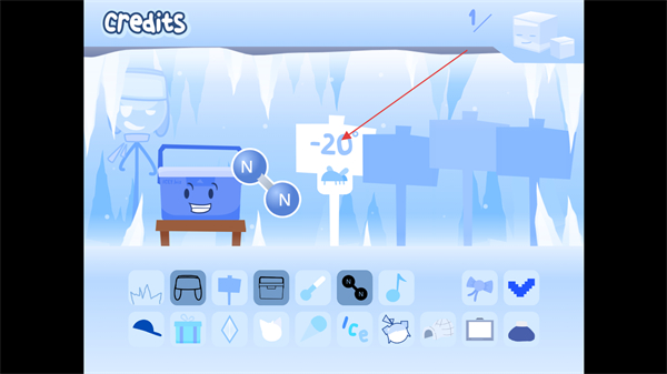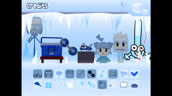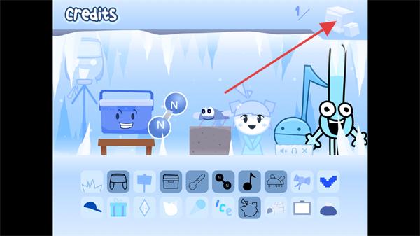 1、进入节奏盒子寒如冰游戏内的冰雪大世界中,点击下方有意思的图标可以查看图标代表的物体。