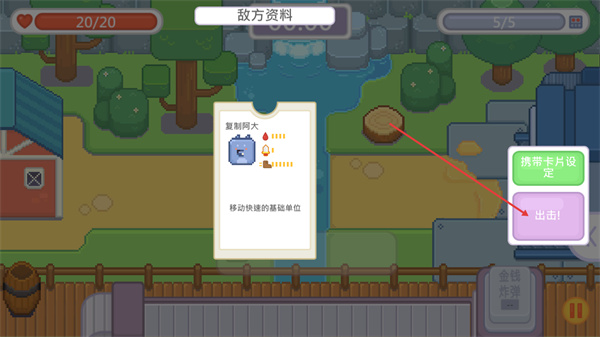 2、在该界面可查看敌方资料了解复制阿大的信息,先通过携带卡片设定配置卡片后,点击出击按钮即可进入战斗环节。
