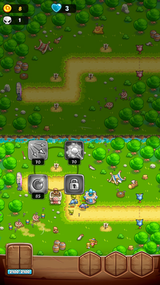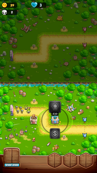 3、击败敌人会掉落金币,可用来升级和建�� 新的防御塔;