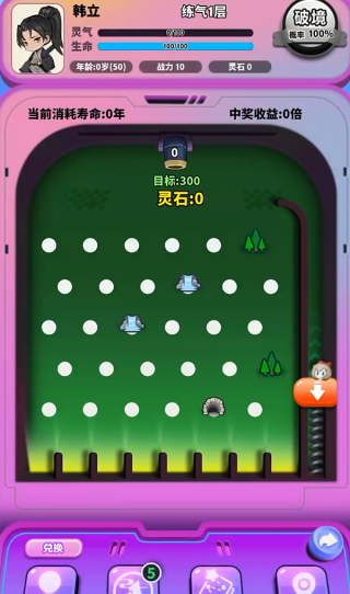 在布满精密机关的巨型弹珠台 上,弹射出你的「游历」弹珠!弹珠将在蜿蜒曲折、布满随机事件节点的「命运丛林」中疯狂碰撞——每一次弹跳、反弹、加速,都可能触发妖兽伏击、秘境入口,或天降奇缘!收集资源淬炼修为,突破境界逆转生死!