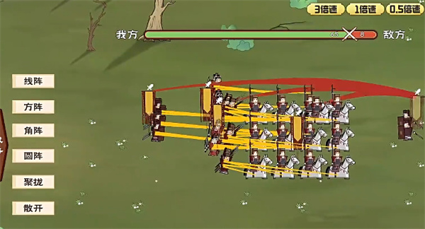 2、根据敌人的进攻方式,需要不断调整阵型,比如聚拢、散开等,慢慢的消灭前方的敌人。