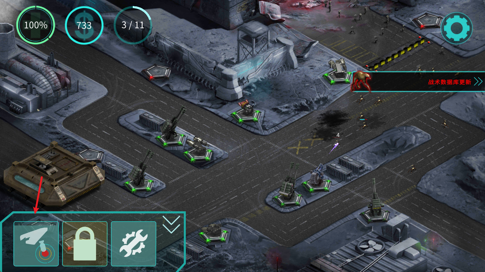 1、首先进入到主界面的战术数据库,在这里可以查看自己各种炮塔的具体属性,方便后续升级。
