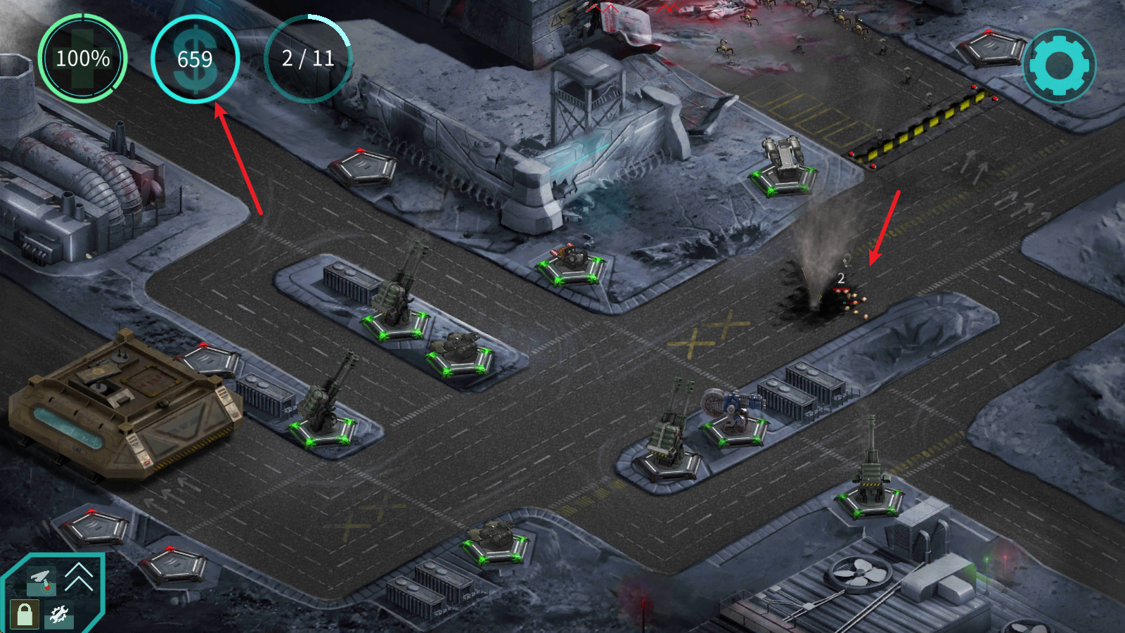 5、当怪物靠近炮塔之后就会被攻击,击败怪物还能获得钱。