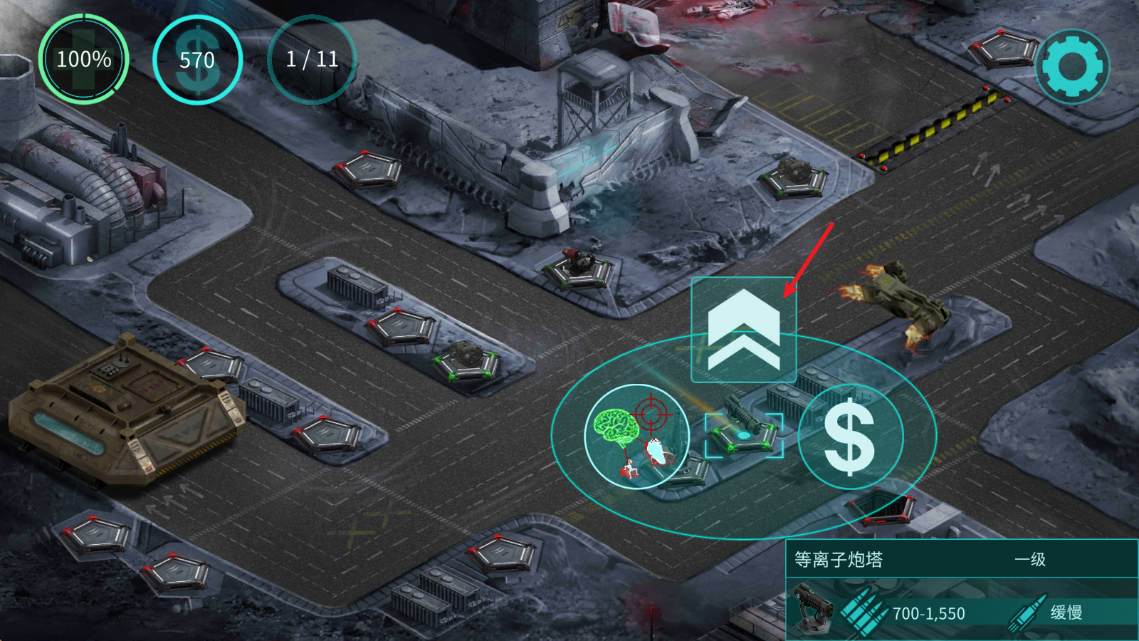 3、点击建造好的炮台,还能够进行升级。