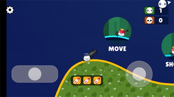 3、滑动右边的按钮可以进行瞄准和发射炮弹,找到想要击败的敌人发射炮弹;