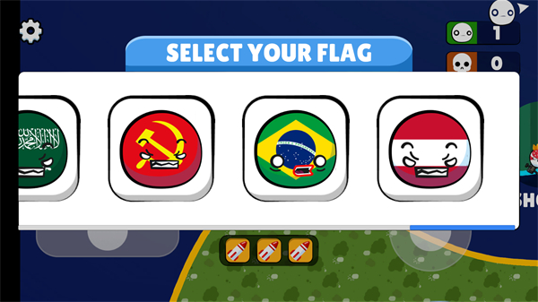 1、打开下载好的游戏进入其中,在进入之前选择自己的旗帜,大家可以自由选择旗帜进行体验;