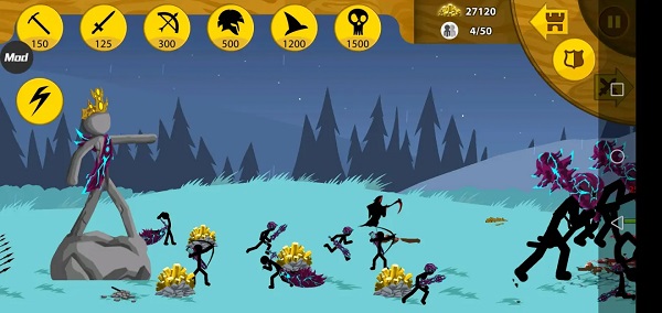有足够的矿石,就能点击攻击类的火柴人,派遣它们去摧毁敌人的基地。