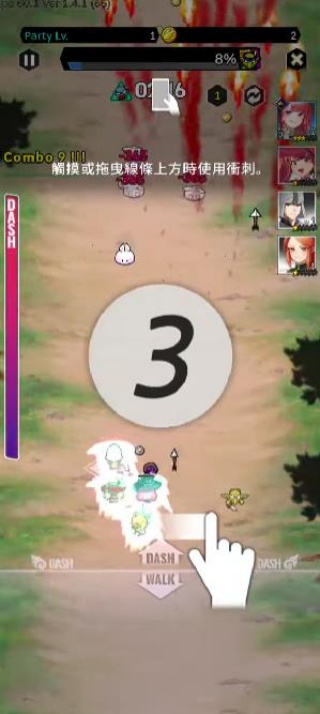 3、操作采用单指滑动设计,左手控制全队走位,右手点触释放技能。