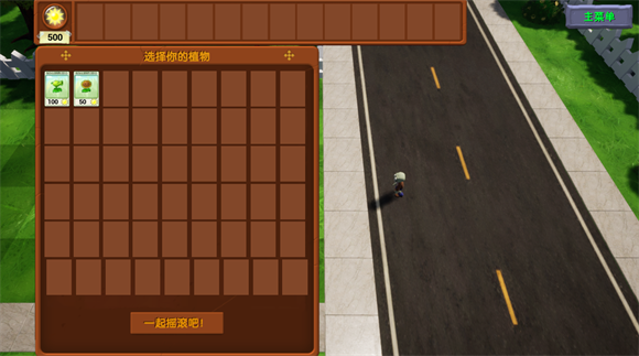 4、最后我们就可以种植植物,然后排兵布阵去进行对战,消灭所有来犯的僵尸,享受两种元素结合的乐趣。