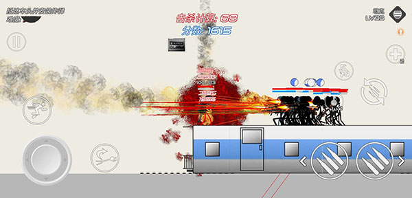 5、游戏中的射击方向是固定的,就需要你不断的移动才能快速的打击到敌人,无法自由转换,点左边就朝左边打,点右边就朝右边打。