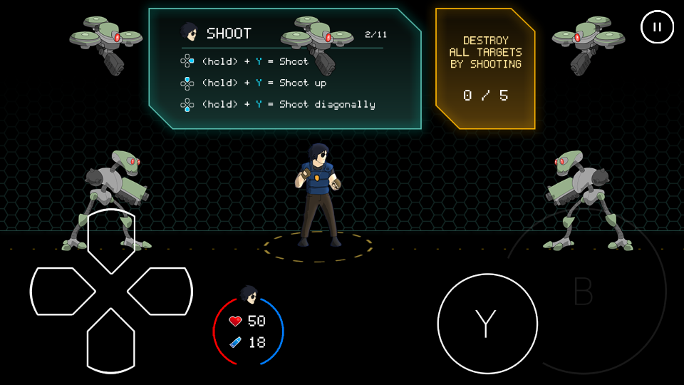 3、根据屏幕提示(如+Y=Shoot)操控角色射击摧毁所有目标完成教程任务。