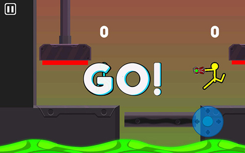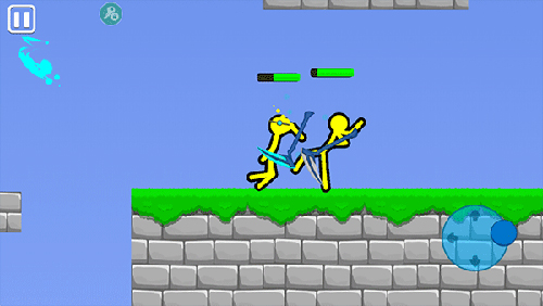 4、通过滑动摇杆来控制火柴人进行攻击,哪一方先掉落即可获得胜利。