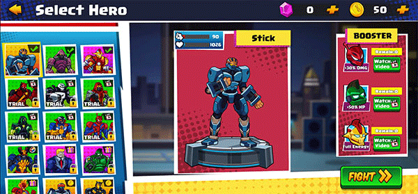 2、选择挑战的关卡后,开始选择�� 的机器人英雄;