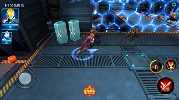 1、玩家可以直接进入游戏,然后完成对话,左侧的按键可以控制奥特曼移动。