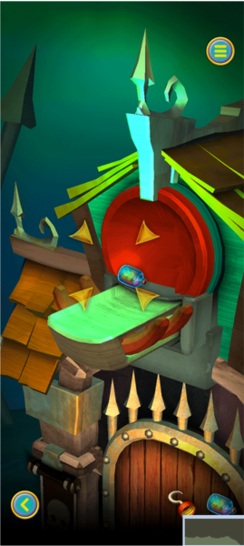 2、点击建筑背后的阶梯上的蓝色滑块,从左滑到右,然后楼梯下面露出一个机关,将刚刚获得的“元素”,放入机关内,并且移动机关内的滑块
