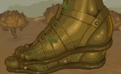 玩家会在遇到青铜巨人之前在一个普通关卡的背景里看到青铜巨人的整条腿。