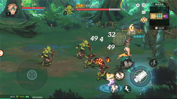 3、剧情结束后会正式开始,开始战斗后左边控制角色的移动,右边是攻击和技能按键。