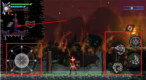 3、剧情结束后,玩家可以自由操控角色进行冒险,左下角是操控人物行走,右下角是射击、跳跃以及其他的功能。