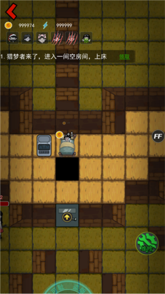 2、游戏中的鬼是根据攻击次数升级的,如果你前期一直打他,他就会升级很慢。不能跟他拼门的血量,这样他会升级非常快,要抓紧把猎梦者打跑,不能让猎梦者一直攻击门。