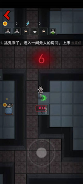 1、宿舍选择:在游戏里面宿舍的选择很重要,选择宿舍注意2点,一个是门要在上方的位置,二尽量选择较远的位置,选择门在上方的位置是因为猛鬼在攻击的时候可以清晰的看到门的血量,如果门在下方的话可能会和猛鬼并合在一起,这样就无法看到门的血量了,偏远位置可以让猛鬼不会第一时间走到玩家这里进行攻击,优先攻击其他队友的房间
