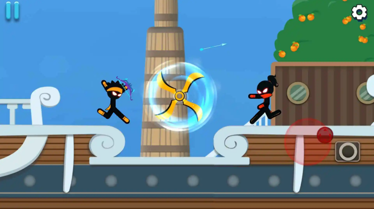 3、传统的火柴人游戏搭配横版的摇杆游戏操作。