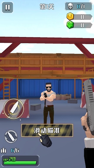 3、在主界面的右侧上方,记录着每日任务、主线任务等丰厚奖励制度,待基本的信息掌握之后,点击“开始游戏”正式进入关卡,滑动瞄准完成射击。