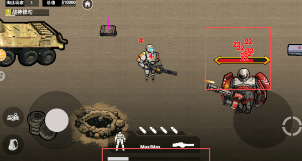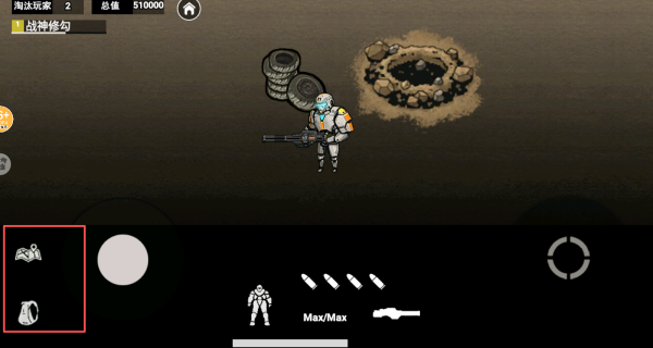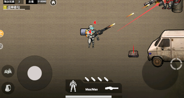 2、直接点击右键进行射击,按住不动就可以调整射击的方向,左边的按钮控制着角色灵活的进行走位。