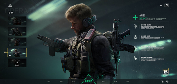 选择四个经典兵种突击兵、狙击兵、工程兵、医疗兵下的多种角色。