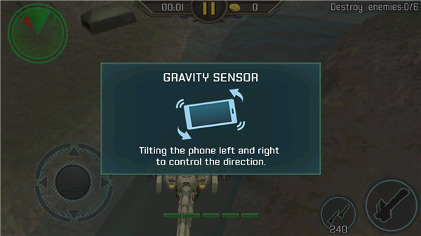 3、游戏采用重力感应和方向键控制方向。并且左右界面上有对应的武器装备和子弹按钮,玩家可以一直操控这些装备,只需要轻轻点击一下,瞄准目标敌人以后就可以射击了。在游戏中不能盲目的进行射击,还要时刻注意自己友军的动态,保护他们的安全也是任务的一部分,在枪林弹雨中找到一条血路,杀出去吧!更有最强大boss等待玩家的到来!
