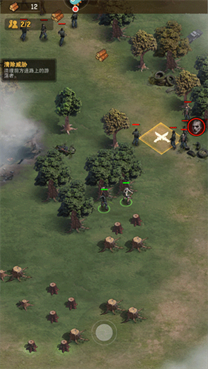 2、完成新手教程,用下方的按钮来控制角色去击败丧尸,完成伐木等任务;