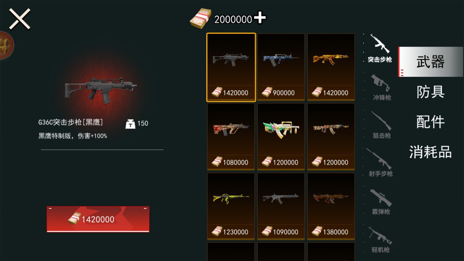 3.在页面下方的菜单中,你可以查看图鉴、战备和资源情况,全面掌握游戏中所有可用的道具和你当前持有的装备状态。图鉴功能帮助你了解武器属性,战备界面则展示你当前的枪械、护甲与消耗品资源。