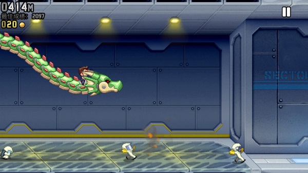 火箭飞人游戏(Jetpack安装器)是一款十分有意思的飞行射击游戏。玩家在游戏中扮演的是主人公(Barry)秘密潜入神秘的基地来夺走邪恶的科学家研制的超级火箭飞行器,接着用这个飞行器来逃生,需要通过上下左右飞行来避开工厂里面的障碍物,还可以用收集的金币来购买特殊道具,使得游戏的耐玩性更高,感兴趣的朋友快来。