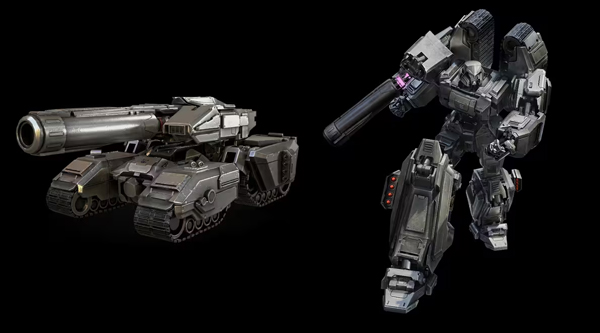 1.载具形态(4人载具):紫色重装坦克,拥有移动堡垒级防御和重复激活利用的机制。支持移动或原地变身,并可使用蓄力电磁炮技能。