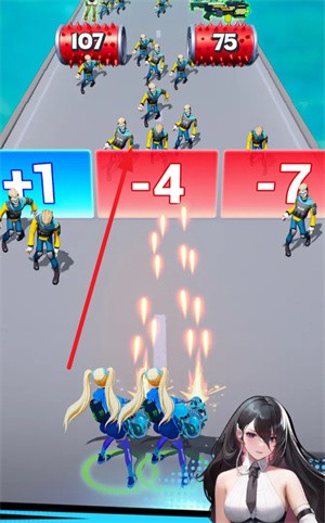 1、玩法新颖射击跑酷等你加入,招募更多美少女帮助自己消灭更多僵尸。