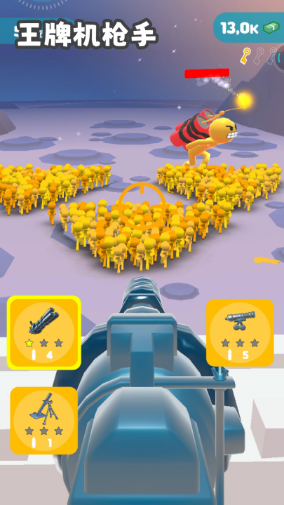 王牌机枪手游戏是一款超酷的休闲射击游戏。游戏中,玩家需要使用机枪或者其它武器消灭向你涌来的大量敌人,从而完成闯关。随着不断闯关,玩家可以购买并组装威力更大的武器。还等什么,快来战斗吧!