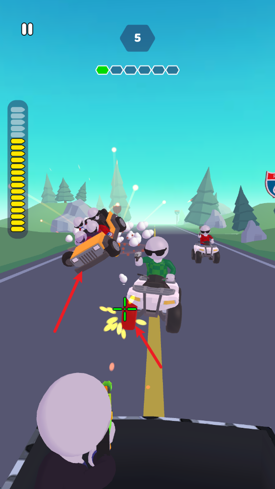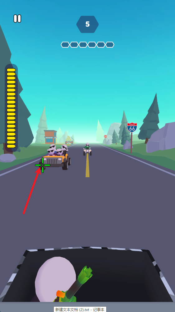 2、接着我们点击下方屏幕就可以射击了,击溃一辆汽车后,准心就会自动的移到下一量。