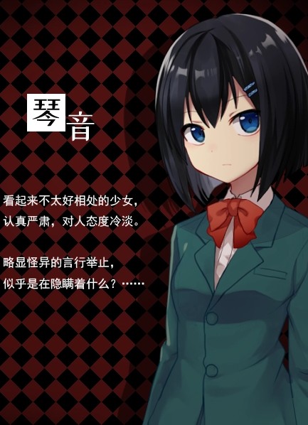 看起来不太好相处的少女,认真严肃,对人态度冷淡。略显怪异的言行举止,似乎是在隐瞒着什么?