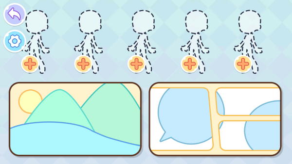 只有一个房间太简单了?不用担心,可以选择场景,插入各种各样的房间和角色,像漫画一样设计!改变房间的装饰,插入不同的房间,追加各种各样的登场人物,制作故事,能出漫画一样的效果!不是很厉害吗?来,看看吧!