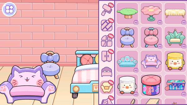发挥想象力和创造力,为玩偶设计房间吧!从壁纸、地板到家具、装饰,都取决于你!窗户放在哪里?床要什么风格?墙壁的艺术和装饰放在哪里?一切由你决定!发挥无限的品味,让每个房间充满活力和个性!