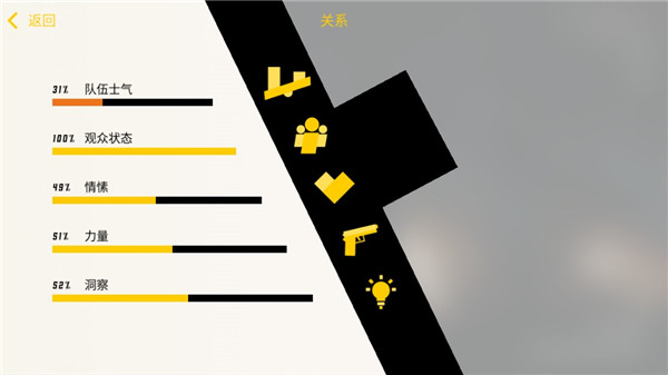 10、经过了这么久的时间,我们又可以查看一下关系,看看队伍士气、观众状态、情愫、力量、洞察有没有提升