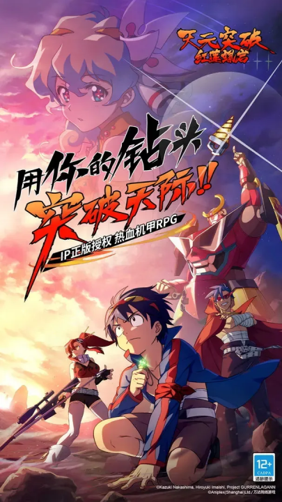 天元突破红莲螺岩游戏首款手游登场!!TRIGGER全面监修,忠实还原经典剧情,带你重温钻头的浪漫。和红莲团一起,冲向天空,冲破宇宙吧!