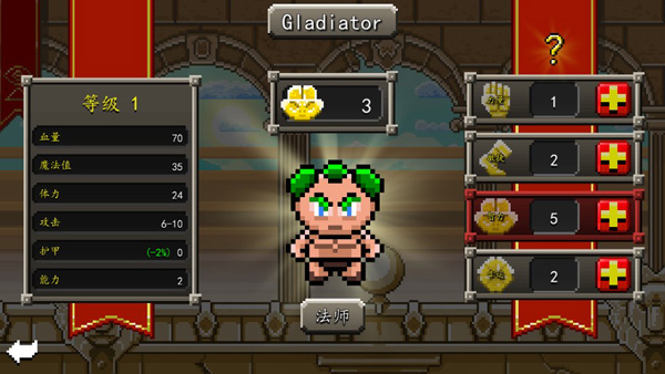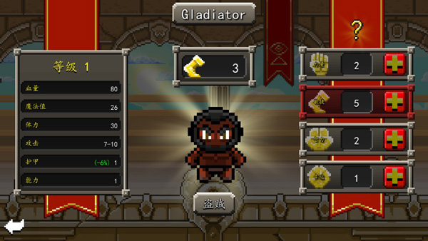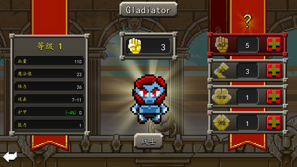 5、挑战随机生成关卡,挑战其它类型的角斗士。