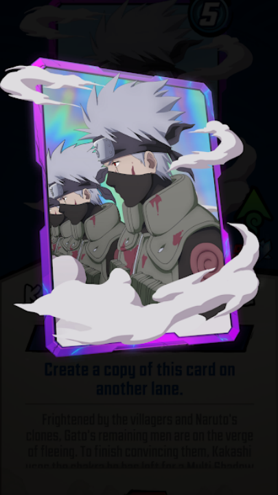 1、实时策略:在三个动态车道上部署您的卡牌。通过把握查克拉的时机并在完美的时刻激活忍术来智取对手。每场比赛持续 3 分钟或更少。