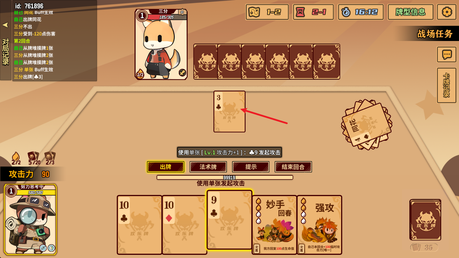 3、打出牌之后,对方如果没有更大的牌出,那么就会对对手造成伤害。