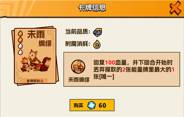未雨绸缪可以使自己在下回合少摸能量卡时要弃置一张牌,启动有延迟,不过也不失为一张好用的卡牌。而星火则是0费附魔还能获得1附魔点,相当于稳过一牌还赚一点,不过有能力的小伙伴也能试试换成例如如意(ur)等能获得附魔点的牌。