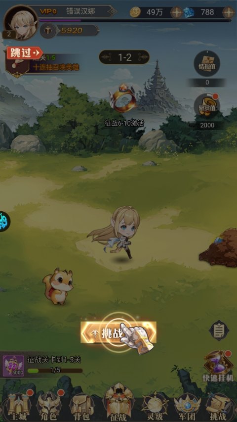 3、然后把招募的英雄加入到自己的队伍,提升英雄等级、穿戴装备可增加属性;